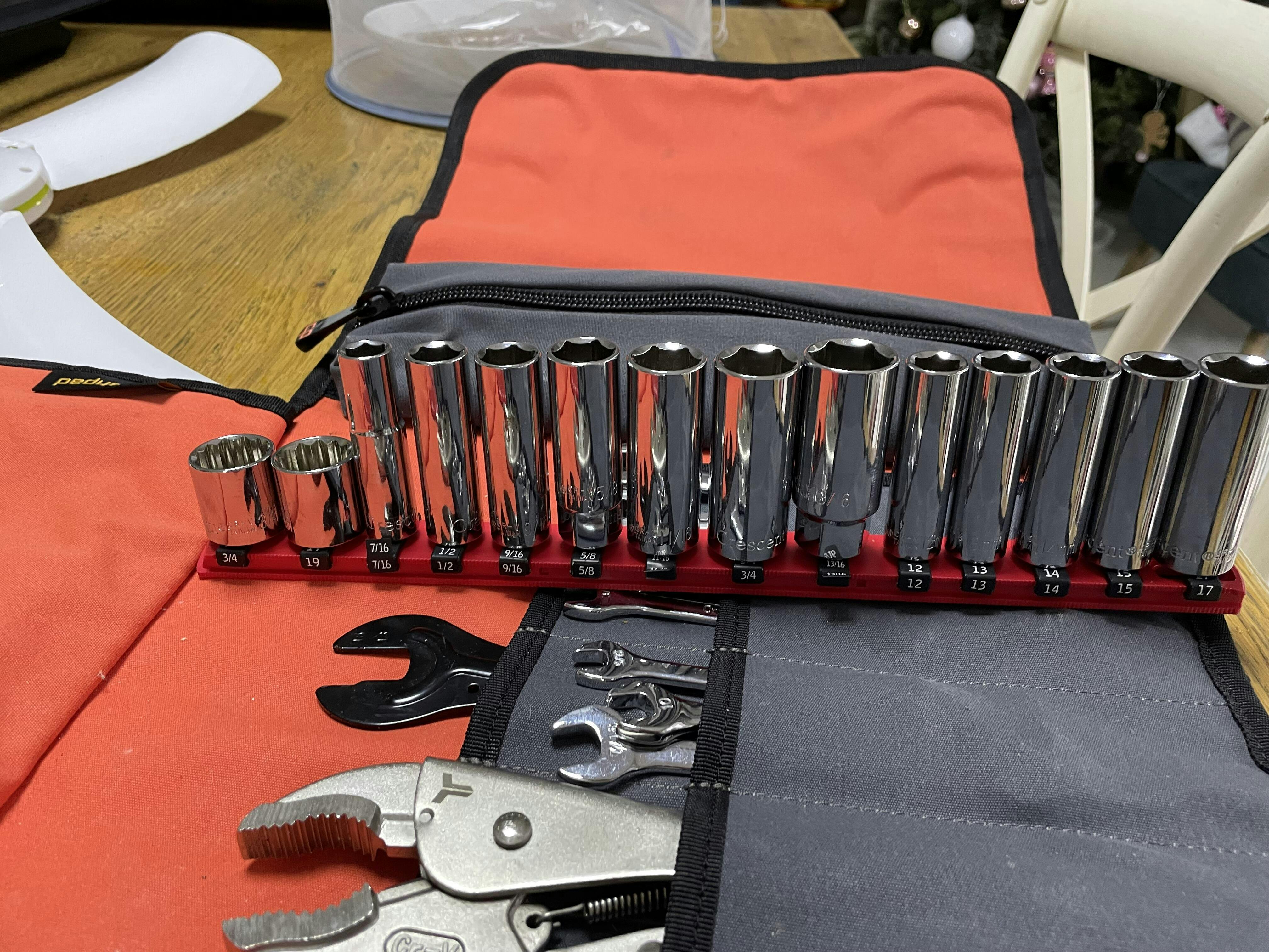 Transport sockets, securely store expensive sets, manage socket drawers and save space! Sockets are loaded with the drive end down. Perfect for storage in the drawer, on the bench, or on the go. This compact set fits a large set of tools using a small amount of storage space. Easy to transport with handles on each end. Twist-Lock clips keep sockets secured for transport and prevent tool loss. Even upside-down - sockets are locked in tight. Socket rails are locked in the tray for security, and unlock with the push of a button.